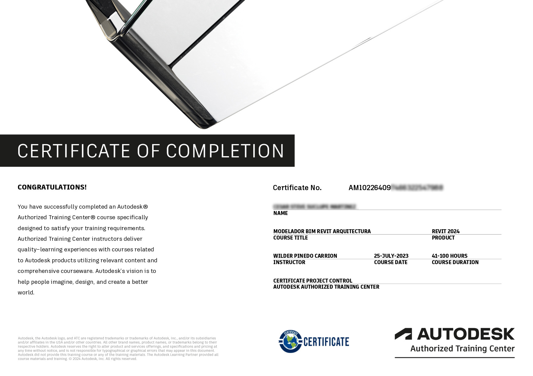 Certificación Internacional de PMI y Autodesk, respaldando tu experiencia profesional ante el Estado y empresas privadas.
