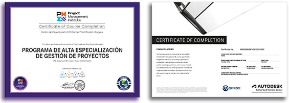 Recibe Asesoría GratuitaLas certificaciones de PMI y Autodesk son requisitos clave en licitaciones públicas y privadas. Te posicionan como un profesional altamente calificado.